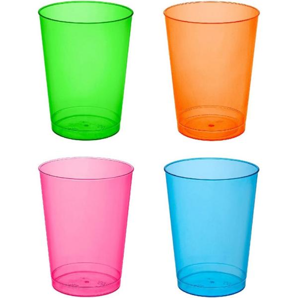 50 Disposable plastic, 10 oz. Tumblers in Assorted Neon Colors.