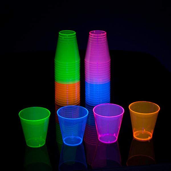 40 Disposable plastic, 2 oz. Shot Glasses. Assorted Neon.